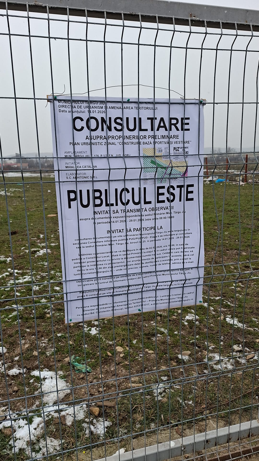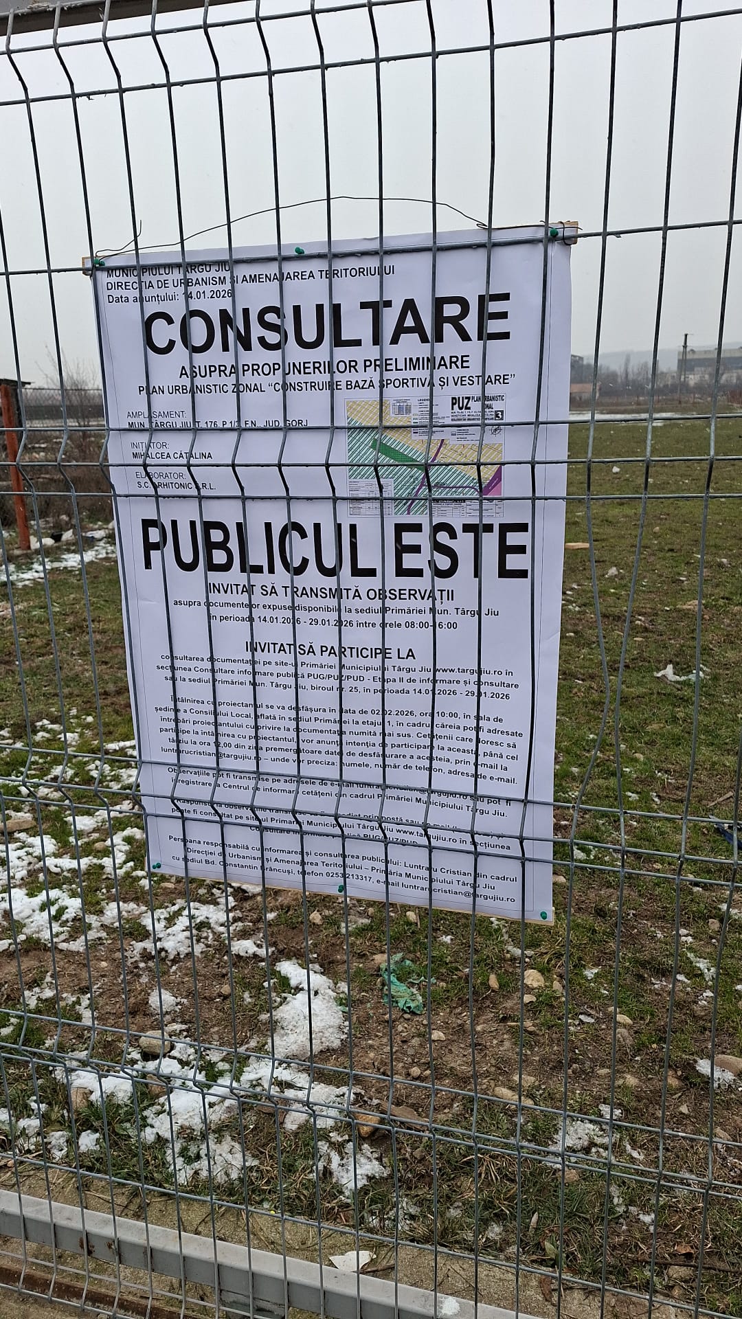 ANUNT PRIVIND CONSULTAREA ASUPRA PROPUNERILOR PRELIMINARE PUZ- CONSTRUIRE BAZA SPORTIVA+ VESTIARE- MIHALCEA CATALINA