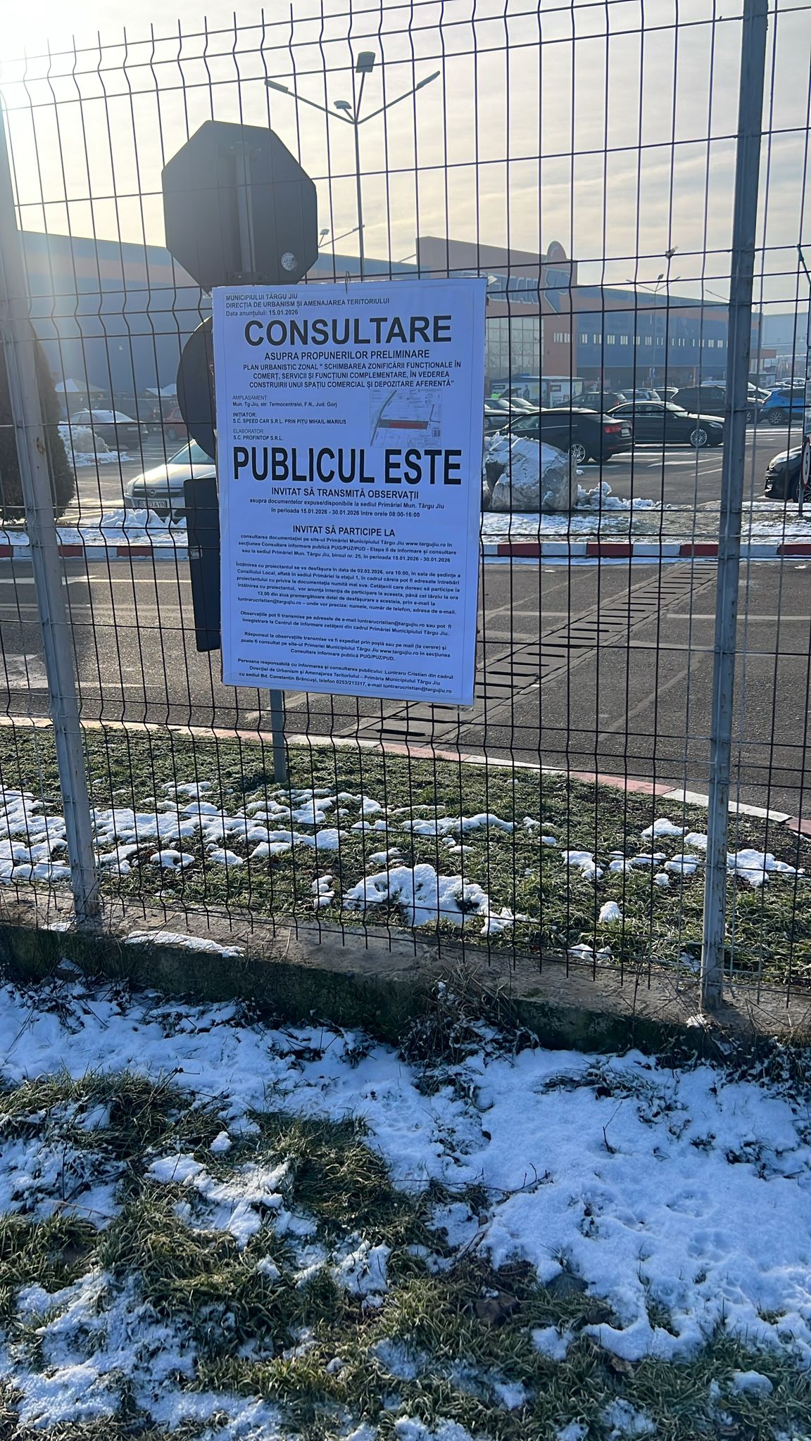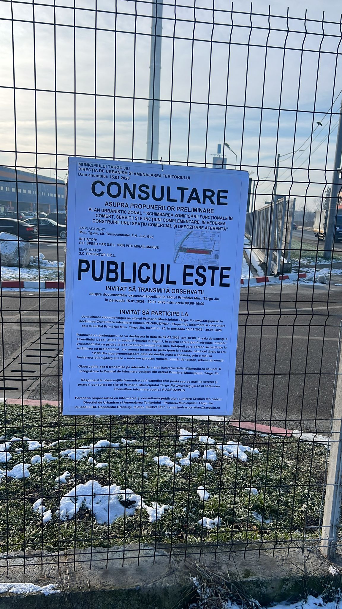 ANUNT PRIVIND CONSULTAREA ASUPRA PROPUNERILOR PRELIMINARE PUZ- SCHIMBAREA ZONIFICARII FUNCTIONALE IN COMERT, SERVICII SI FUNCTIUNI COMPLEMENTARE IN VEDEREA CONSTRUIRII UNUI SPATIU COMERCIAL SI DEPOZITARE AFERENTA- SC SPEED CAR SRL