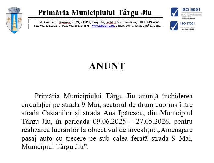 tel: 40.253.213317 fax: 40.253.214878 email: primariatargujiu@targujiu.ro