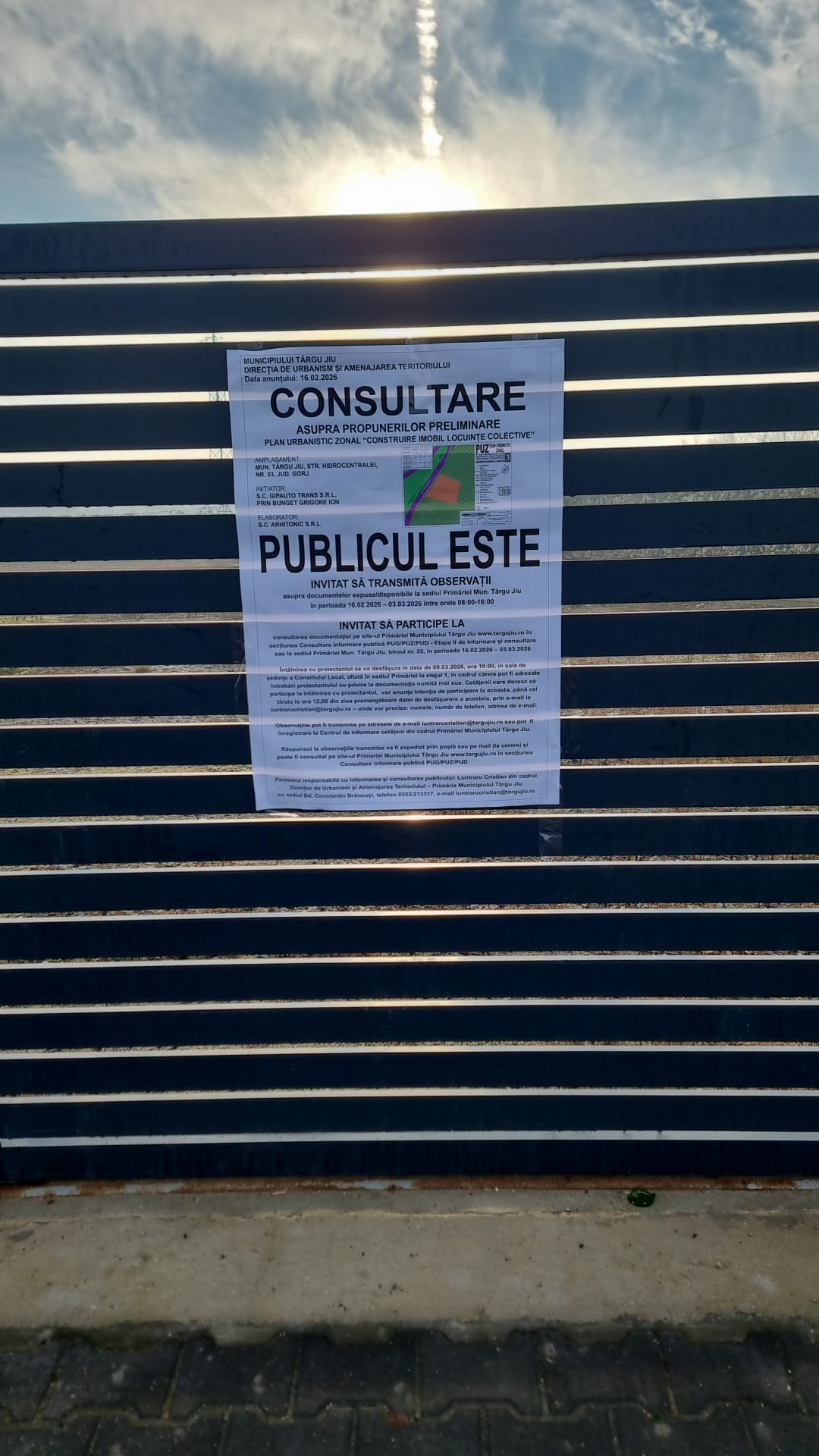 Prima pagină ANUNT PRIVIND CONSULTAREA ASUPRA PROPUNERILOR PRELIMINARE PUZ- LOCUINTE COLECTIVE, STRADA HIDROCENTRALEI, NR.53, MUNICIPIUL TARGU JIU, JUDETUL GORJ- SC GIPAUTO TRANS SRL
