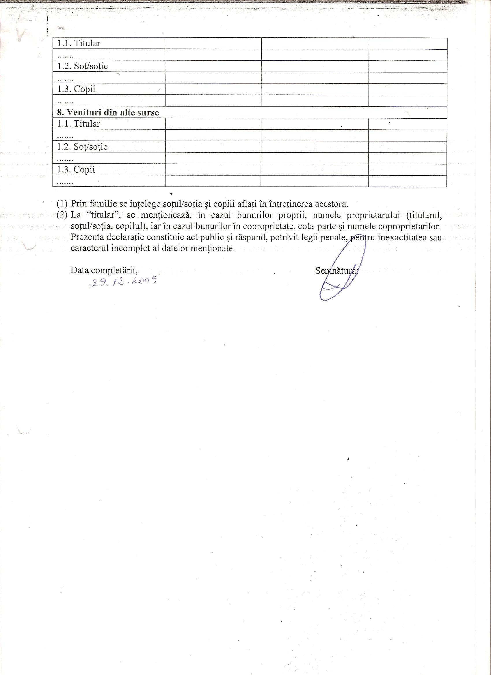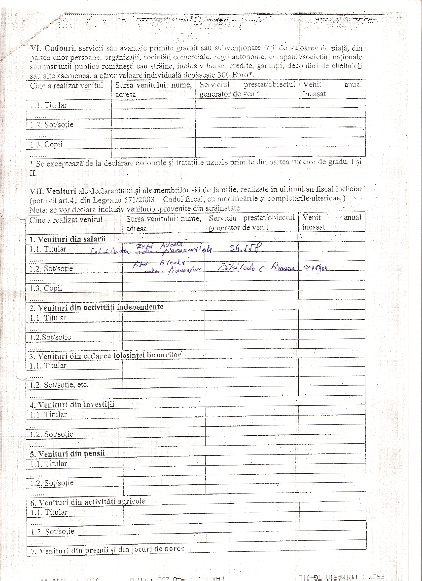 | Numele si prenumele | Functia | Declaratie avere fata/verso | Declaratie interese personale |