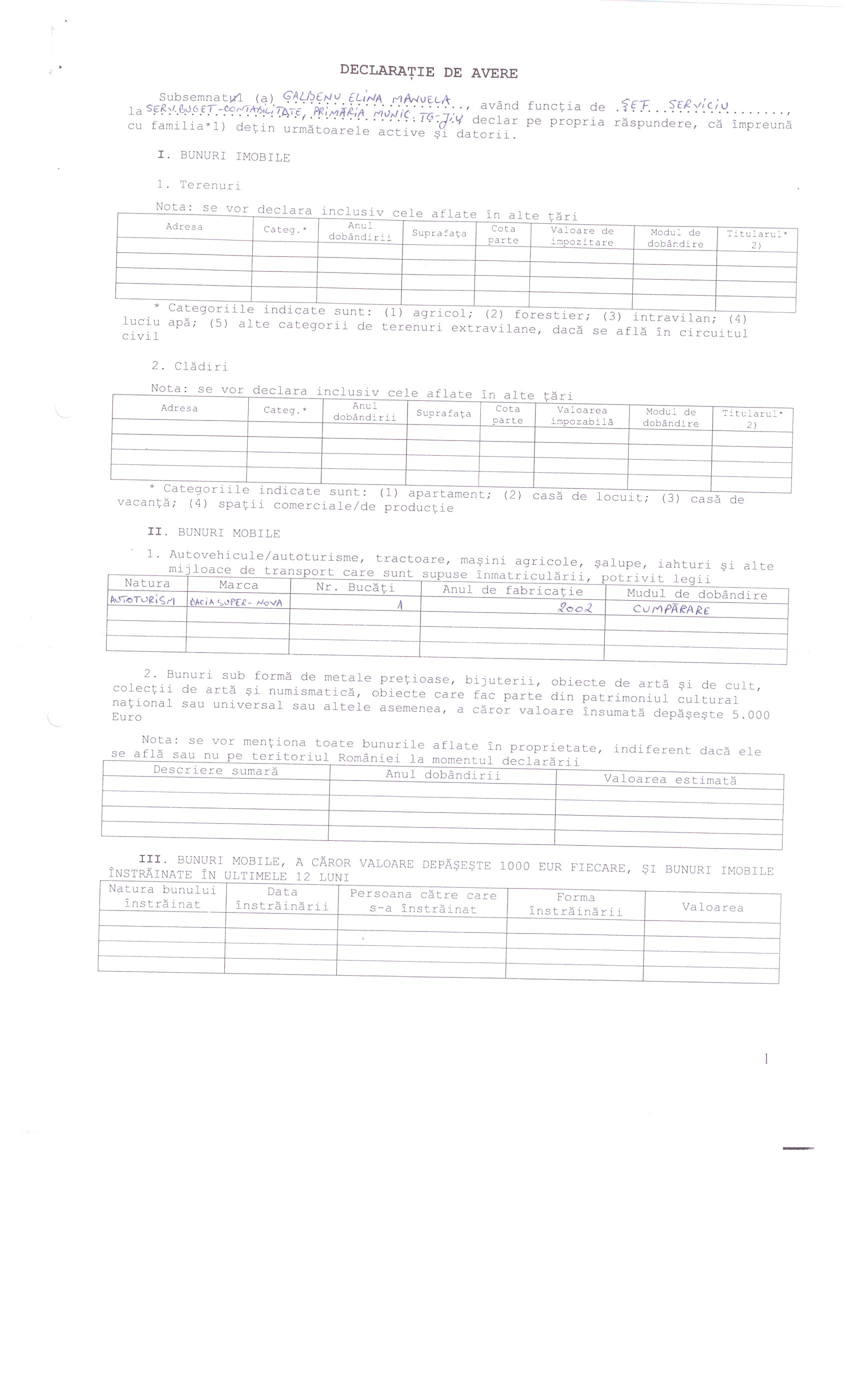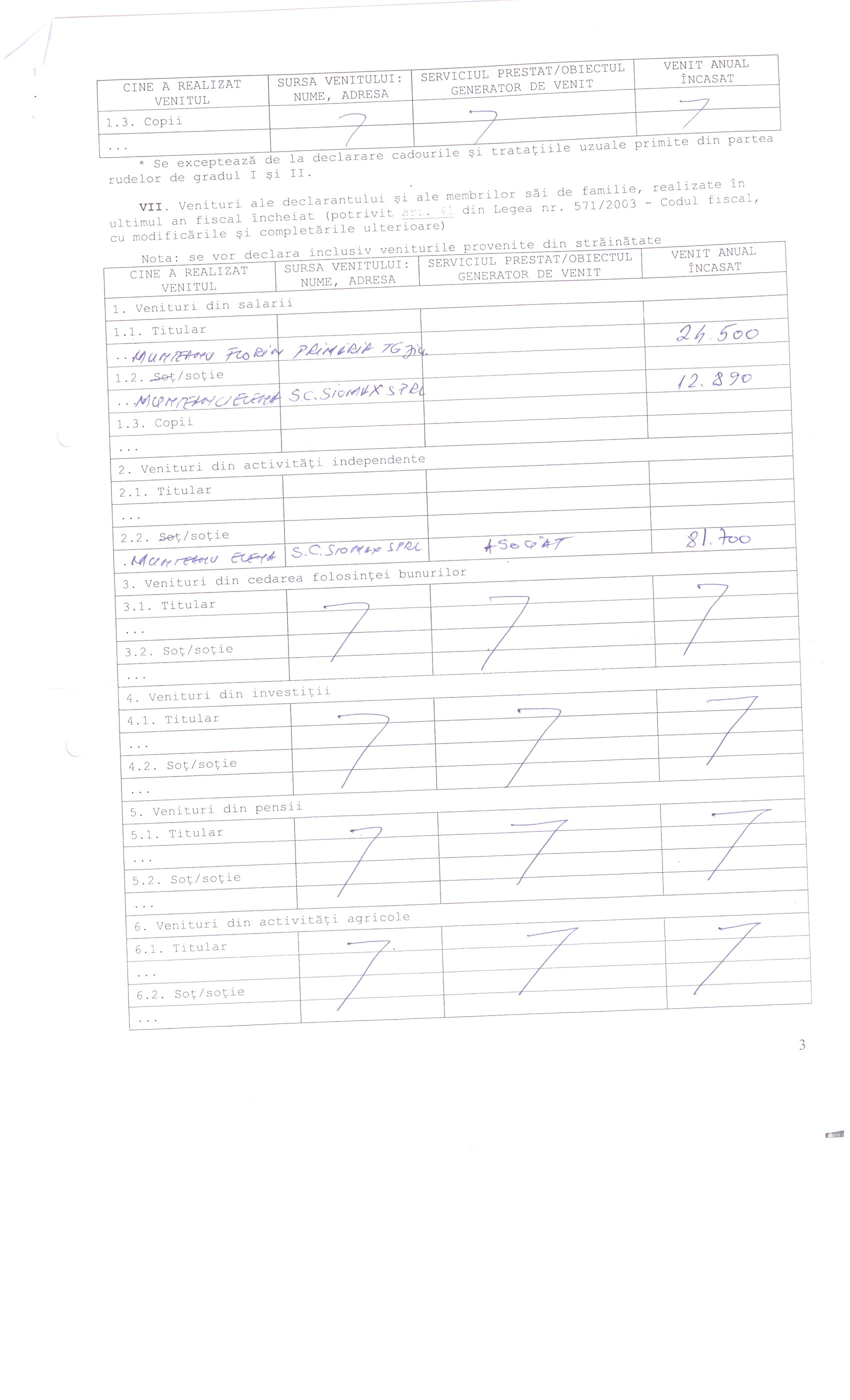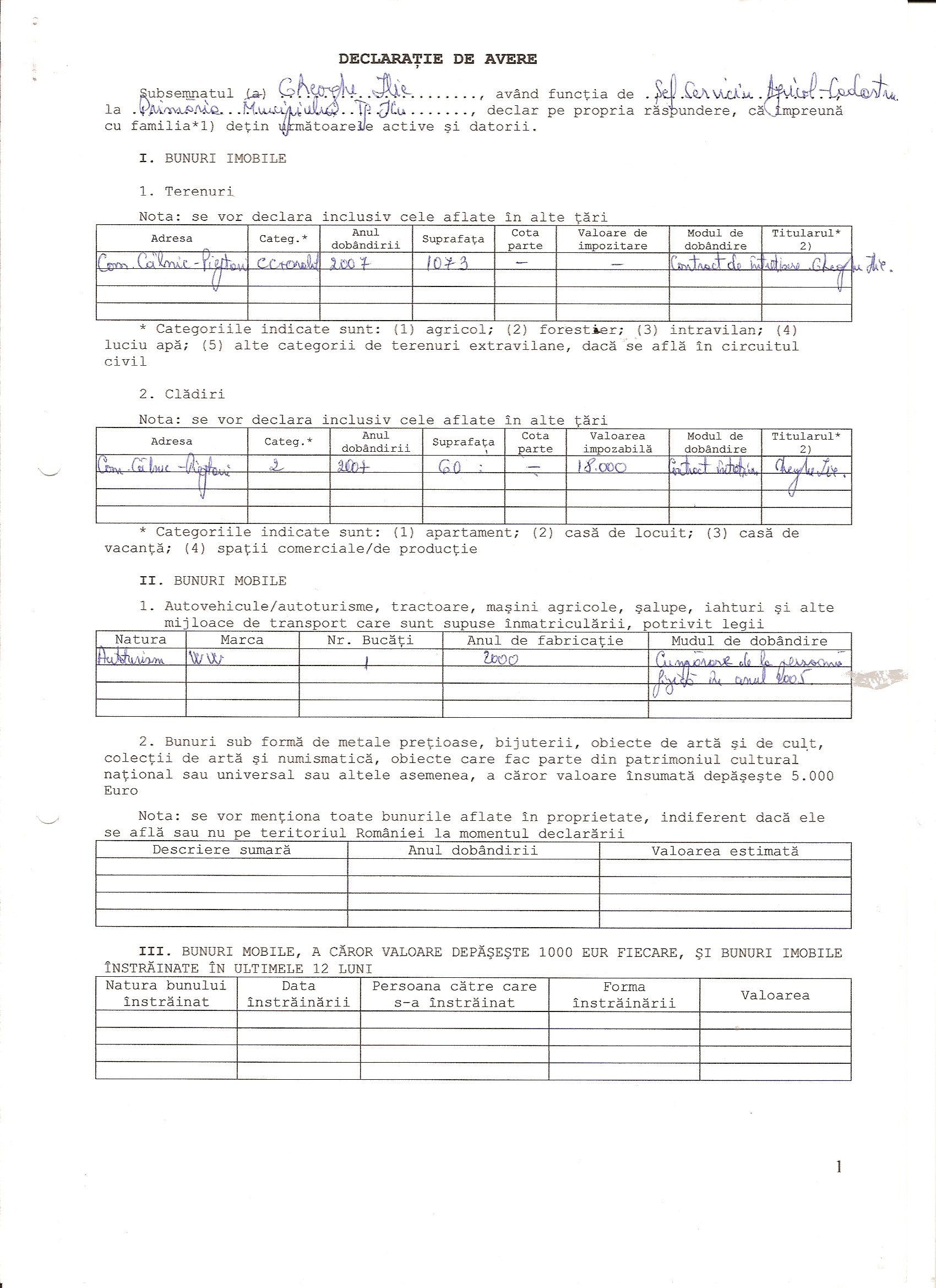 | Numele si prenumele | Functia | Declaratie avere fata/verso | Declaratie interese | Declaratie interese personale |