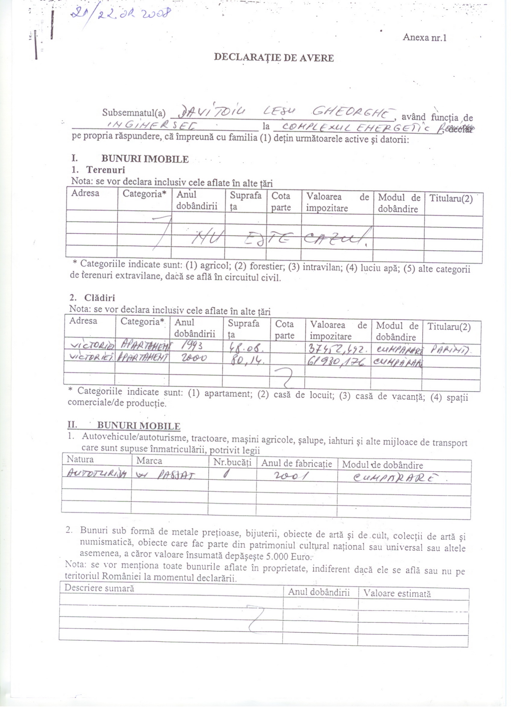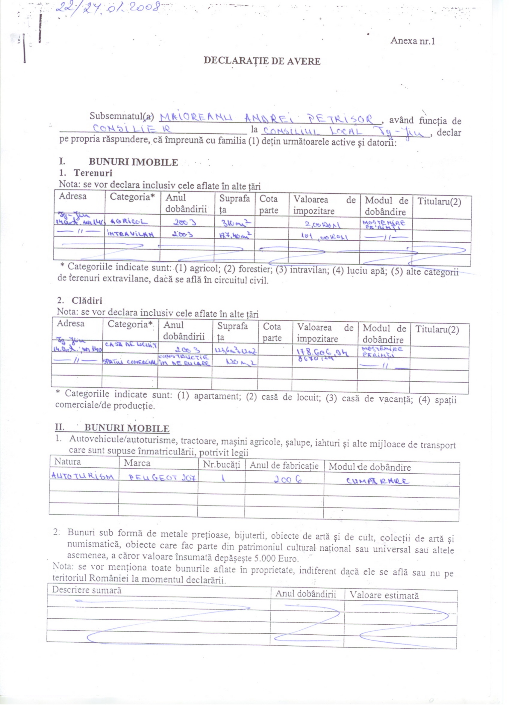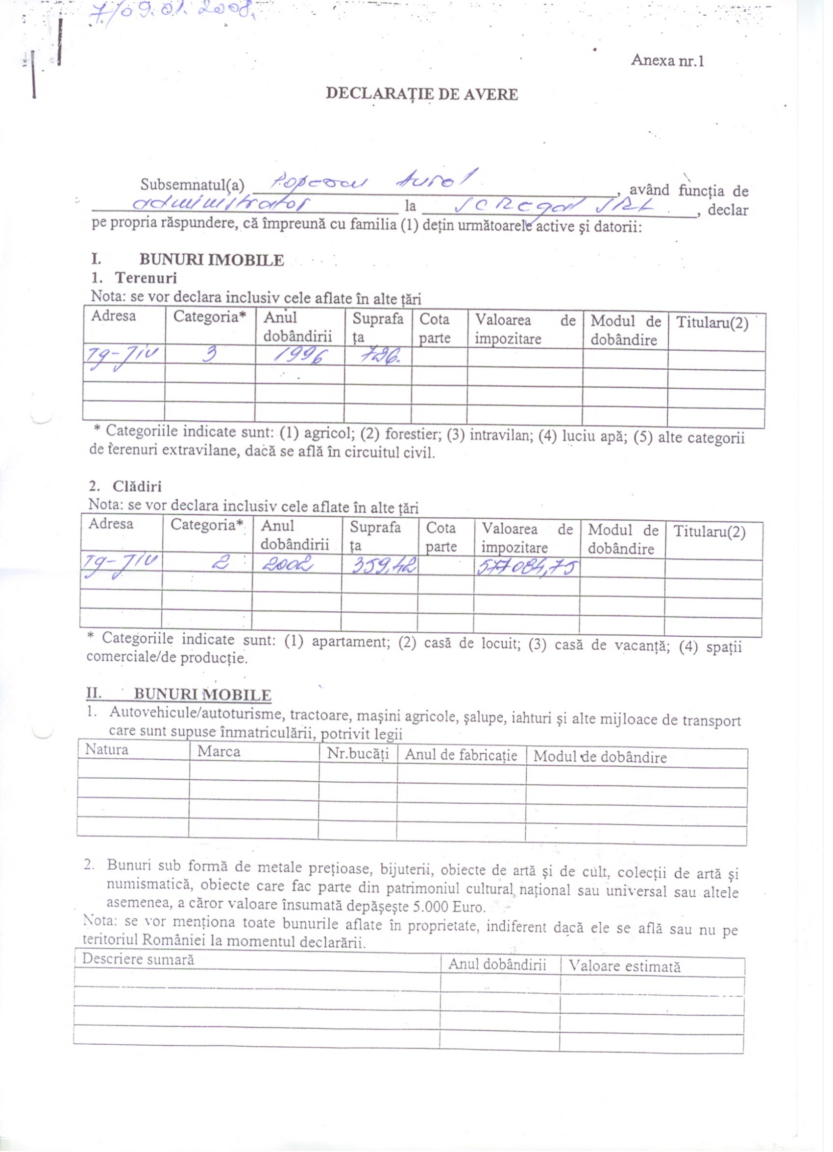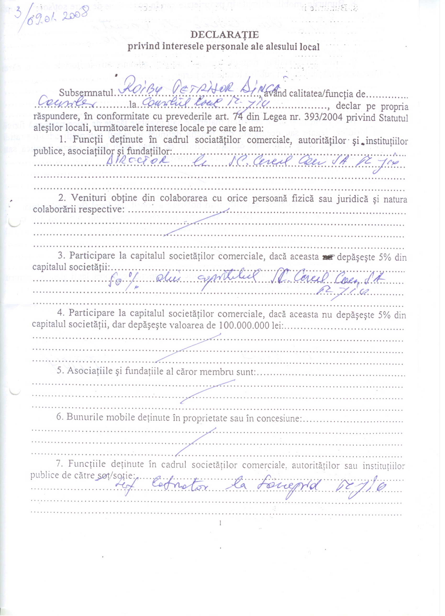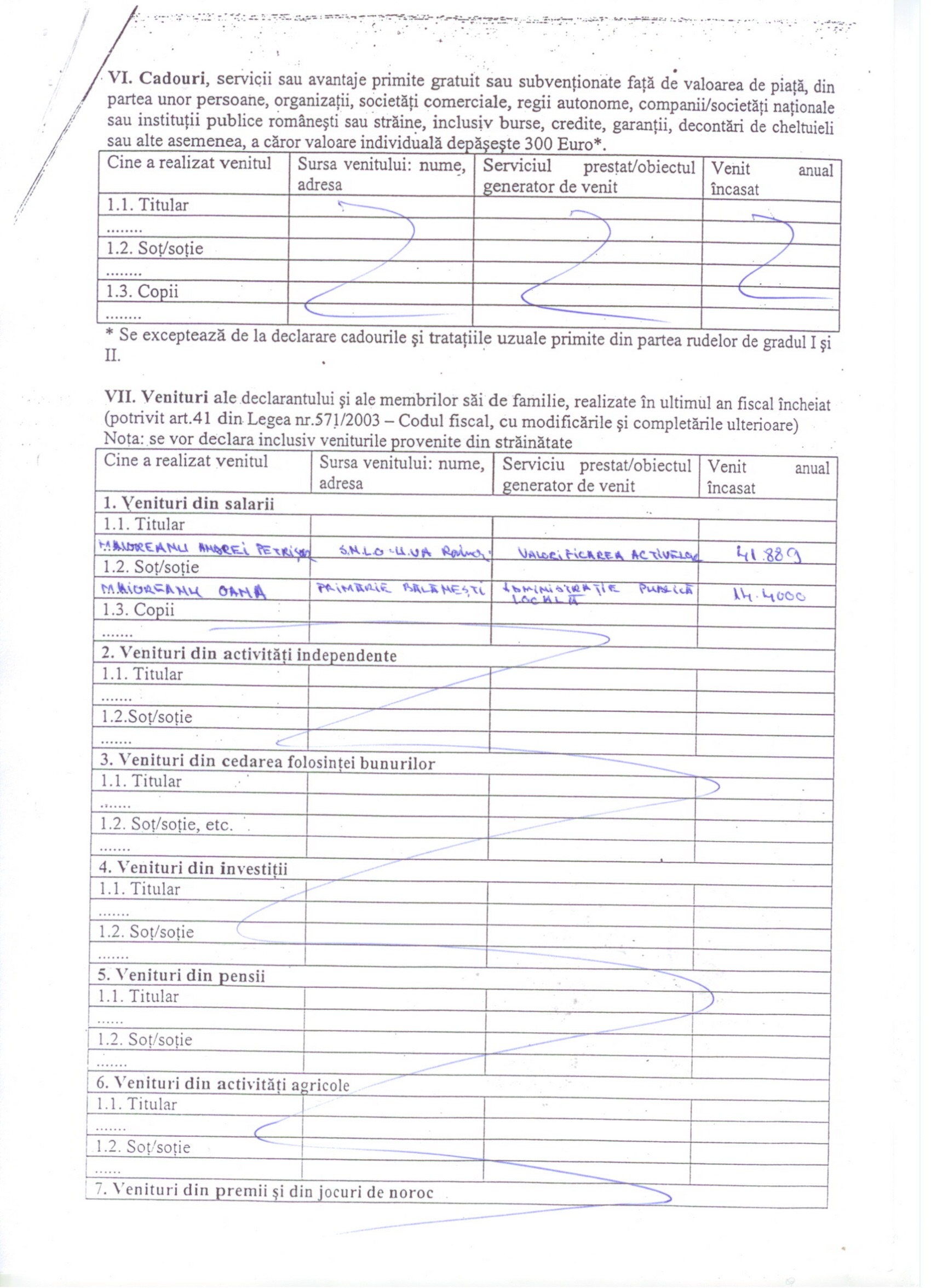 | Numele si prenumele | Functia | Declaratie avere fata/verso | Declaratie interese personale |