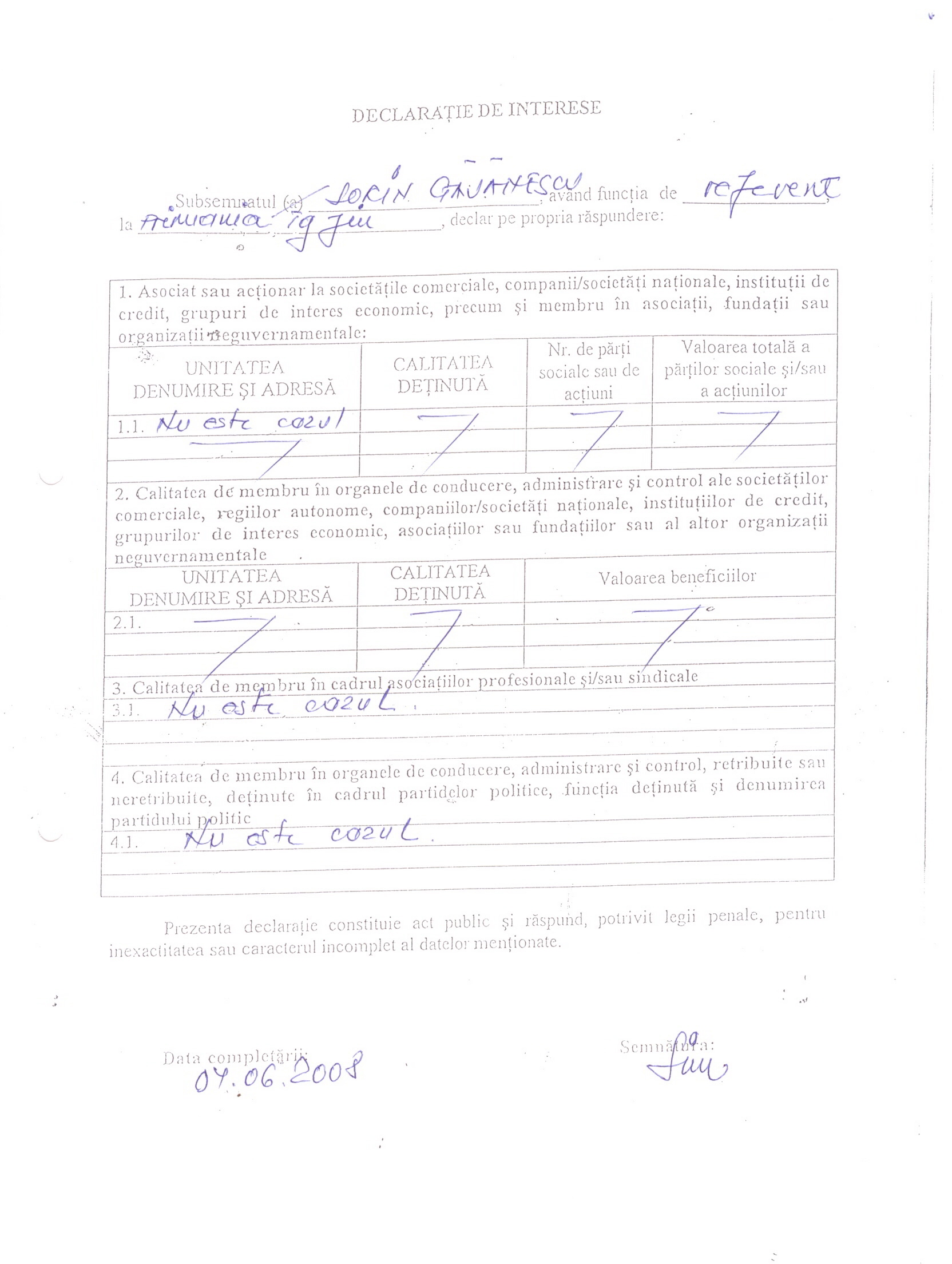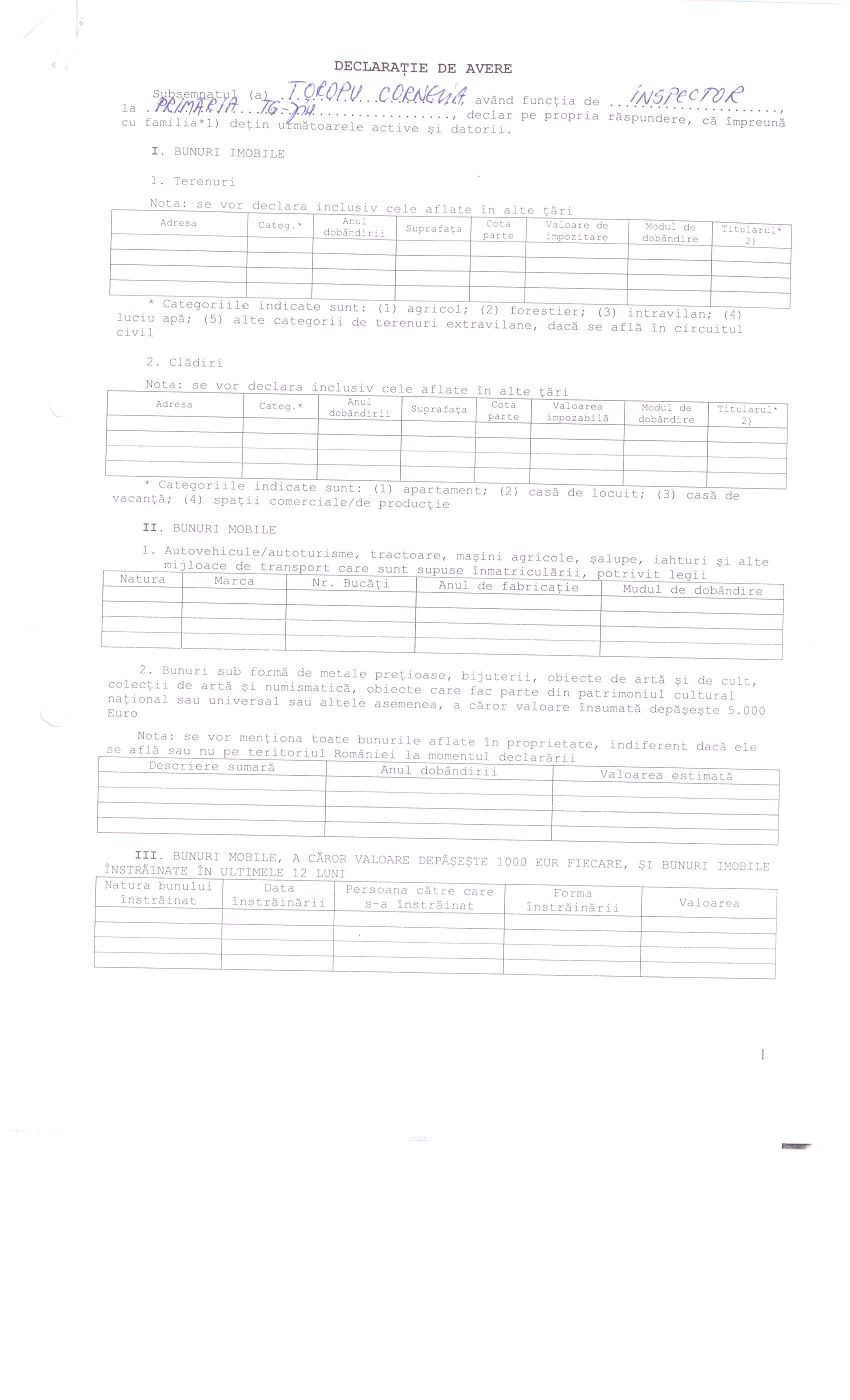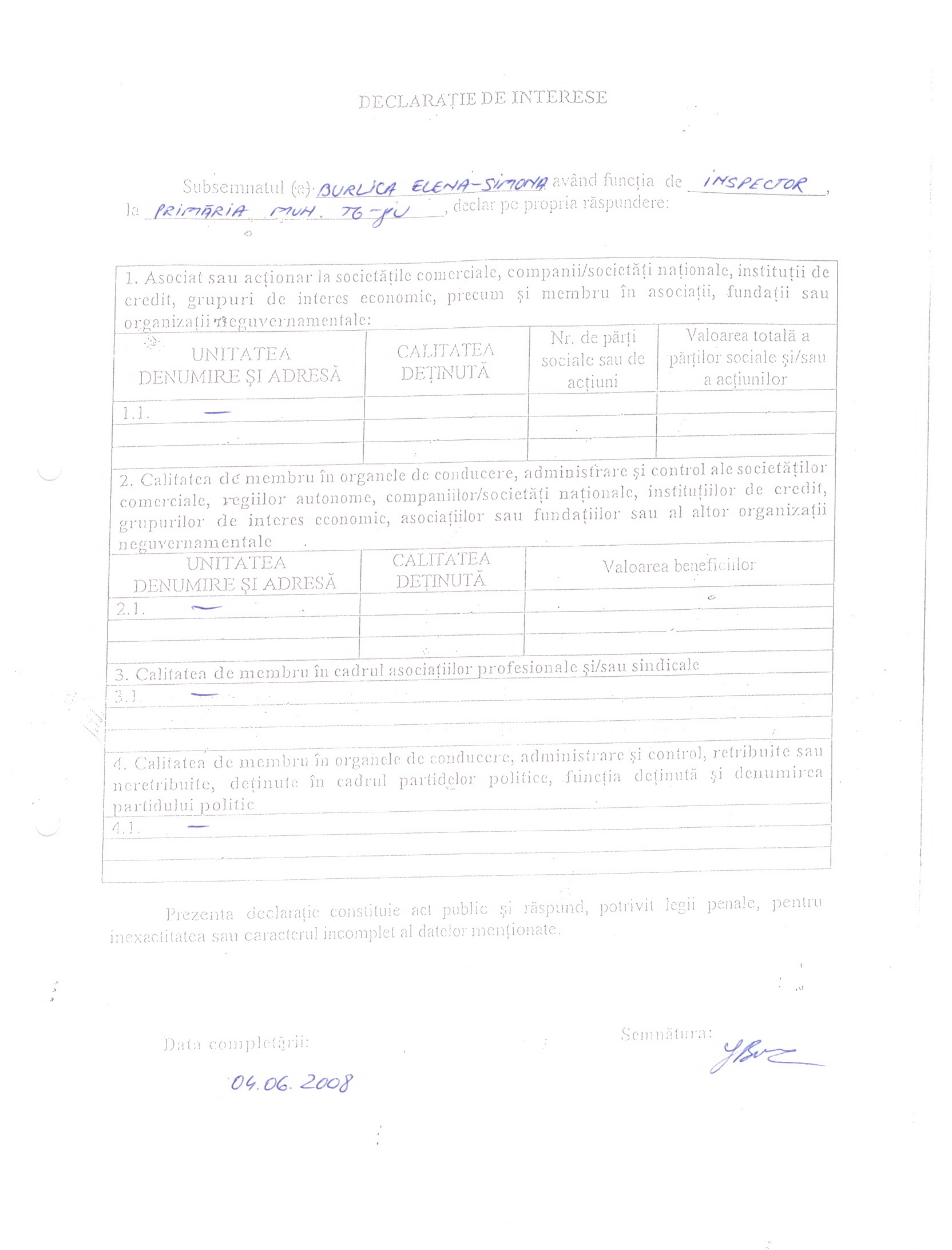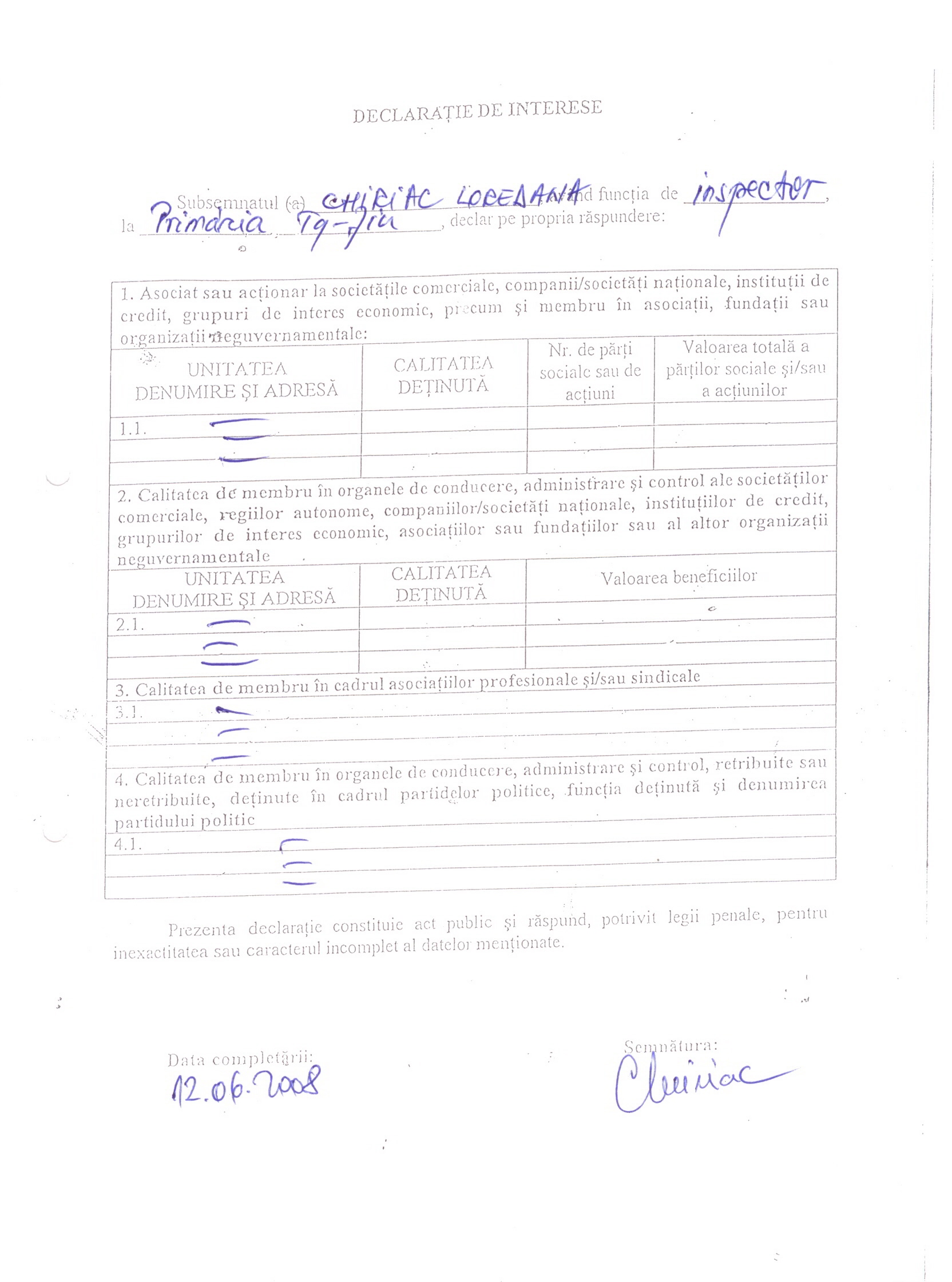 | Numele si prenumele | Functia | Declaratie avere fata/verso | Declaratie interese | Declaratie interese personale |