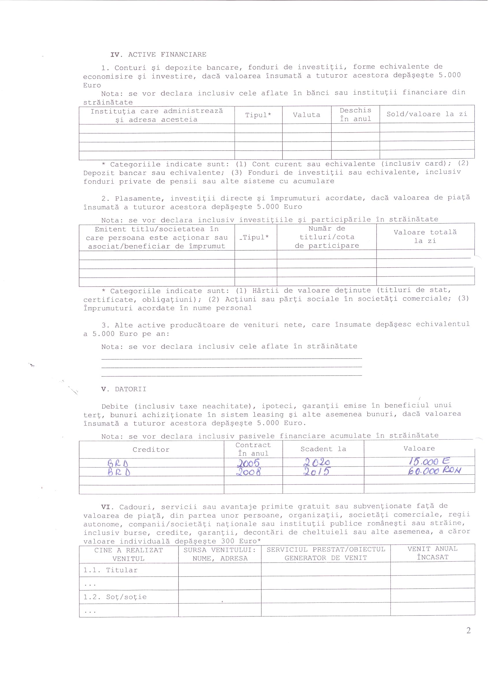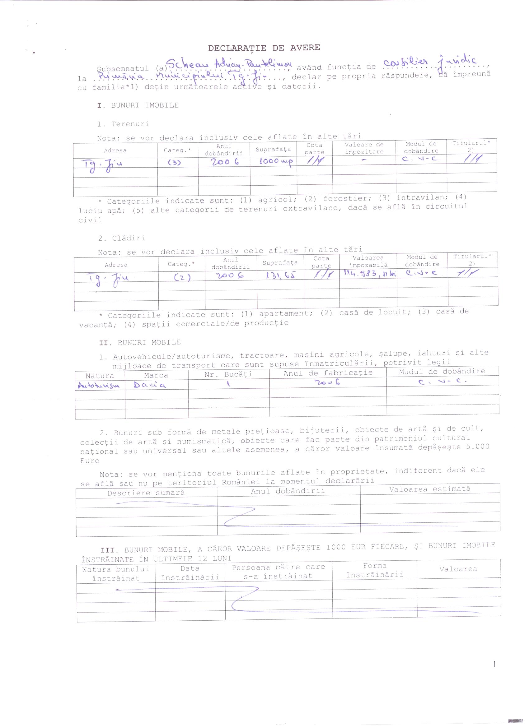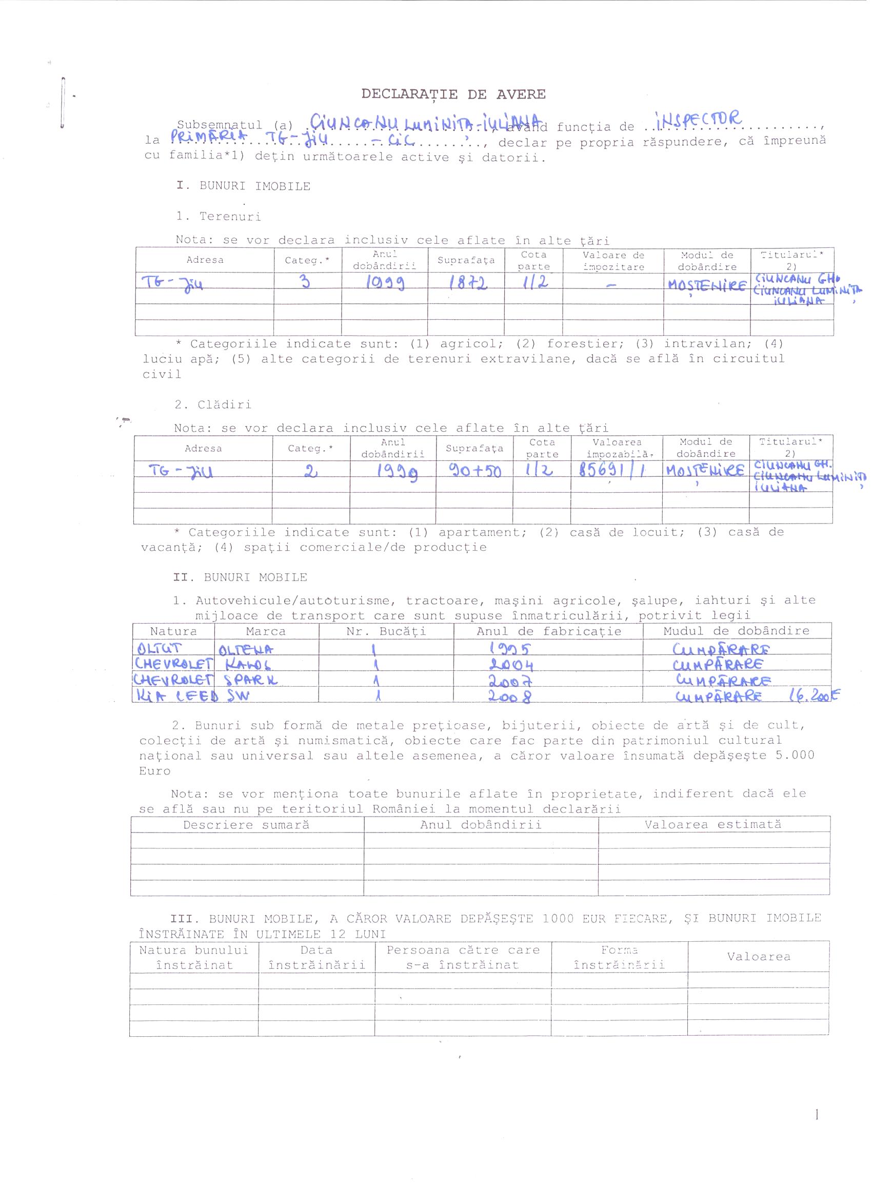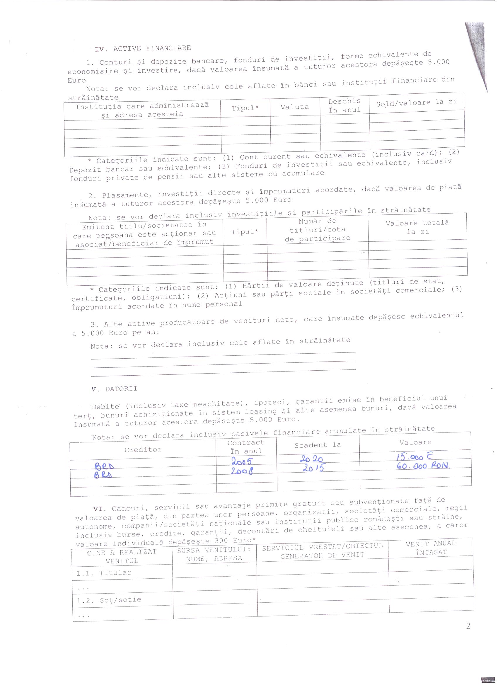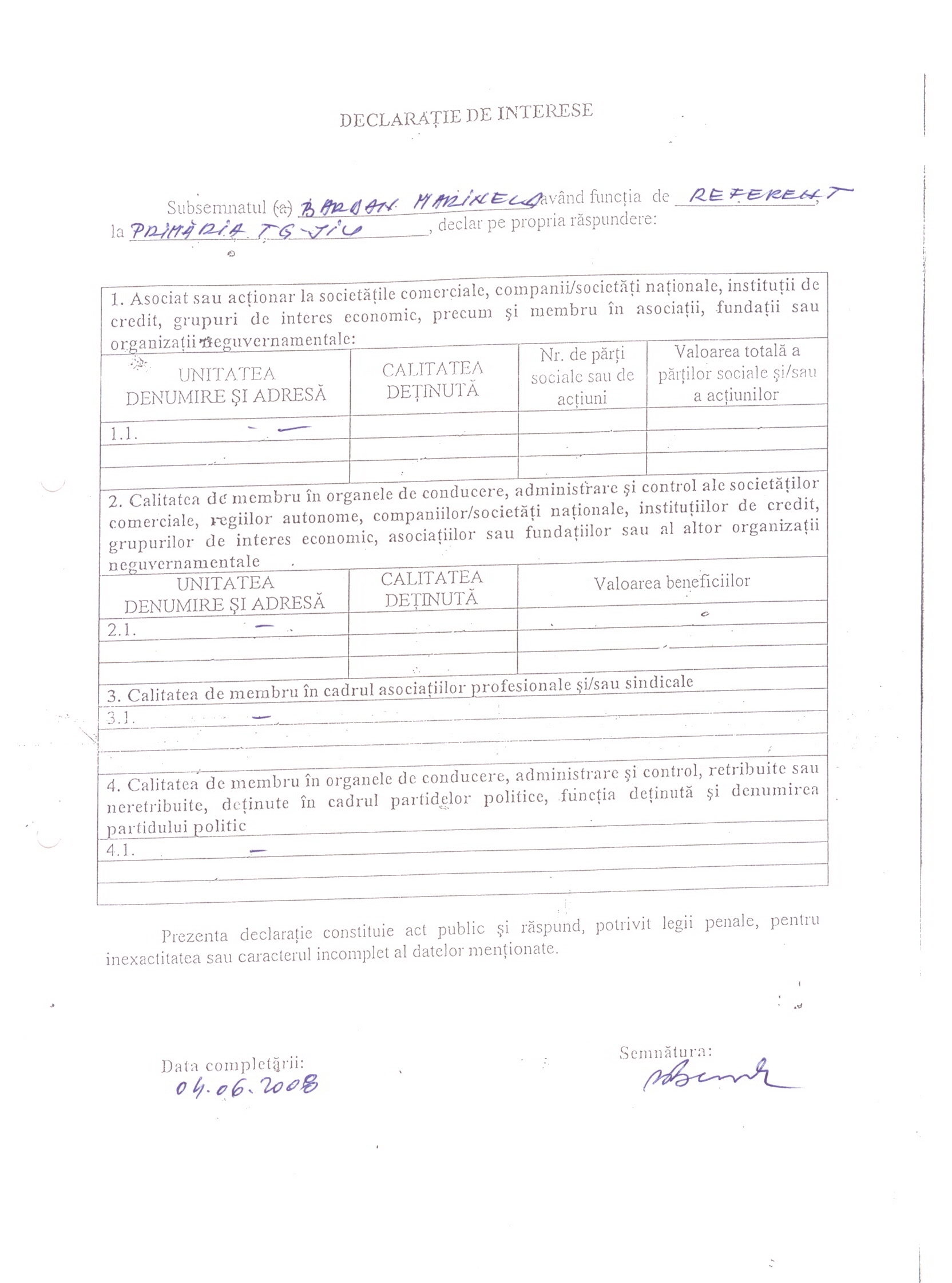 | Numele si prenumele | Functia | Declaratie avere fata/verso | Declaratie interese | Declaratie interese personale |