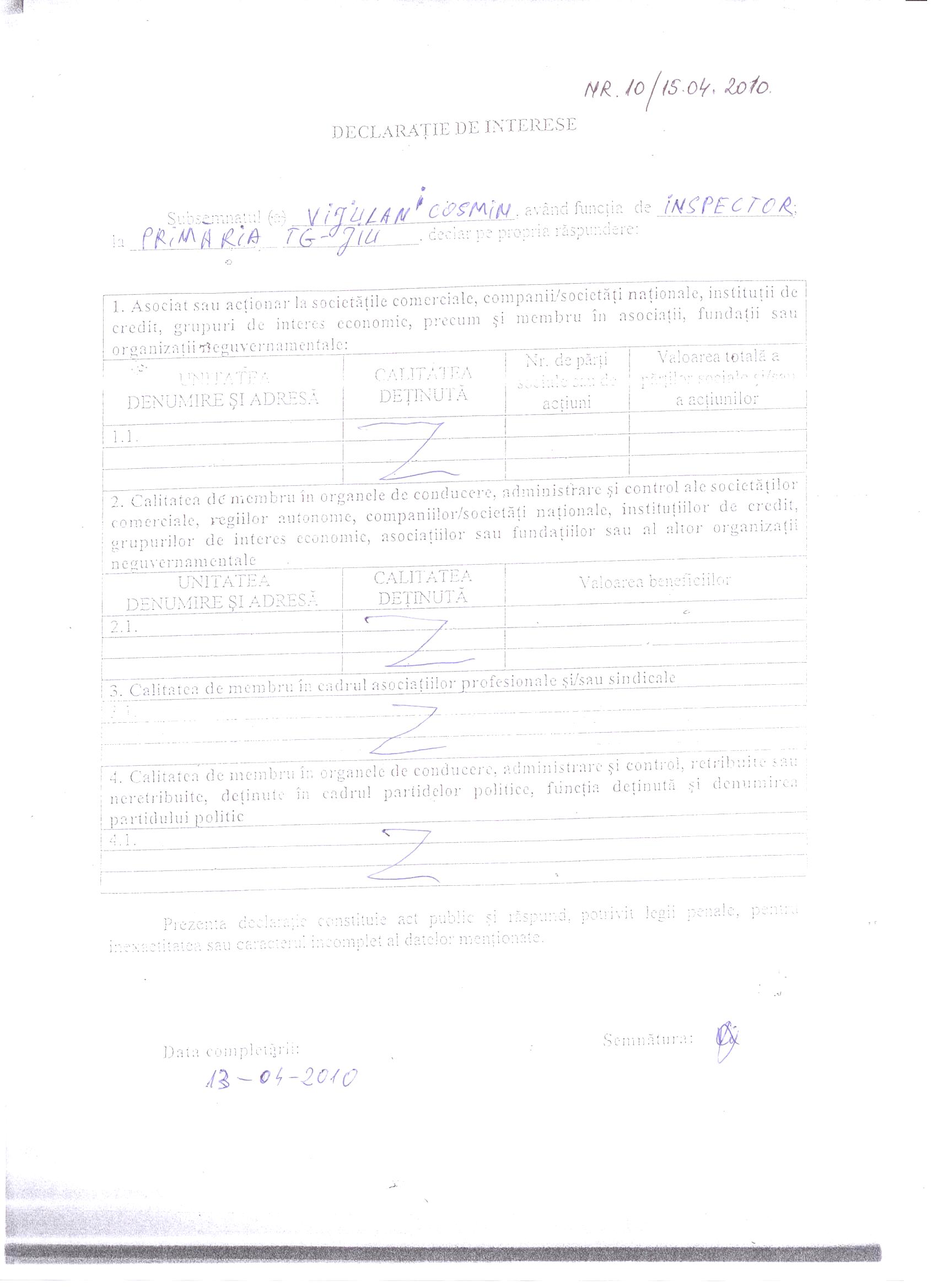 | Numele si prenumele | Functia | Declaratie avere fata/verso | Declaratie interese | Declaratie interese personale |